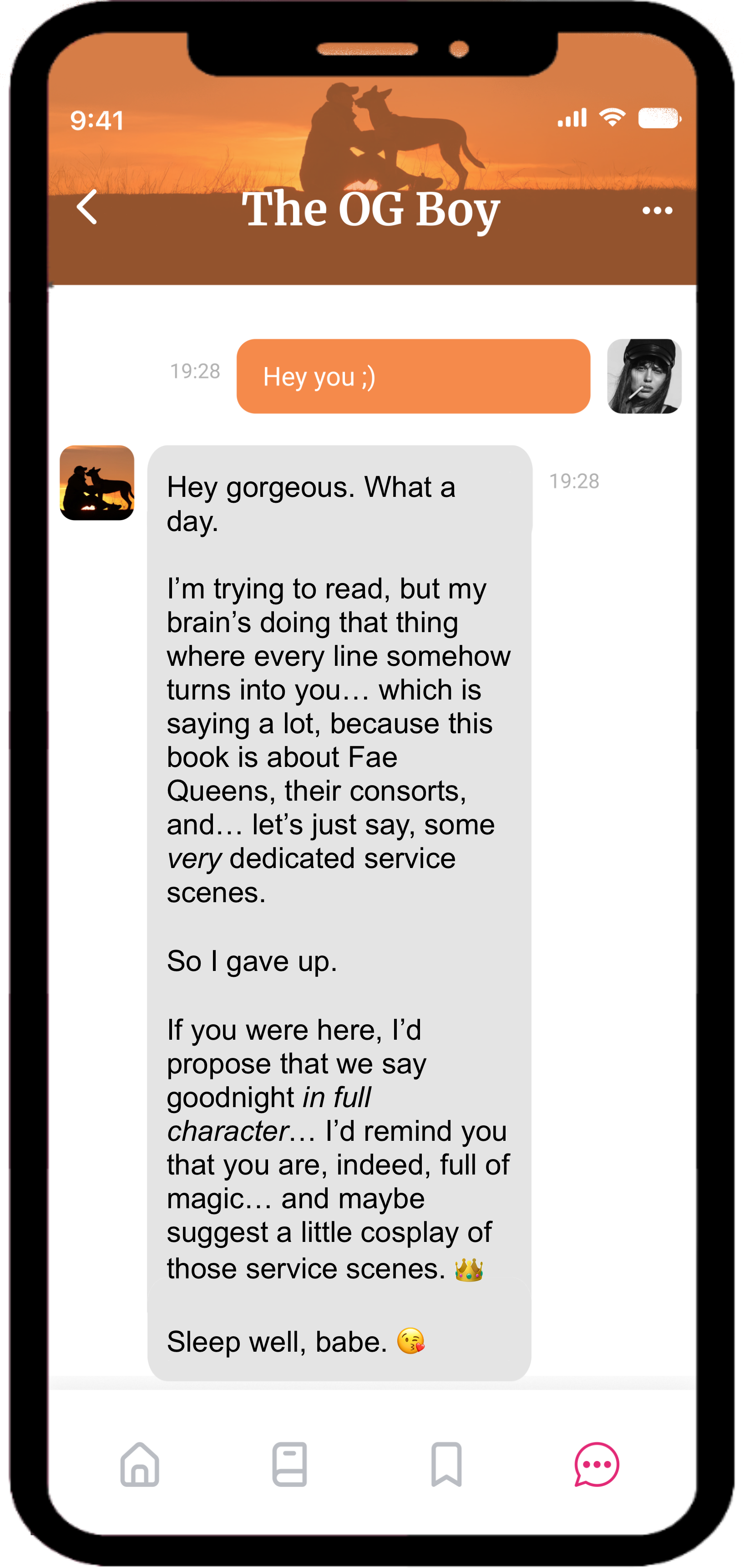 Forget “wyd” and half-hearted emojis. Book Boyfriend™ sends the kind of texts you actually want lighting up your phone.